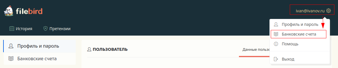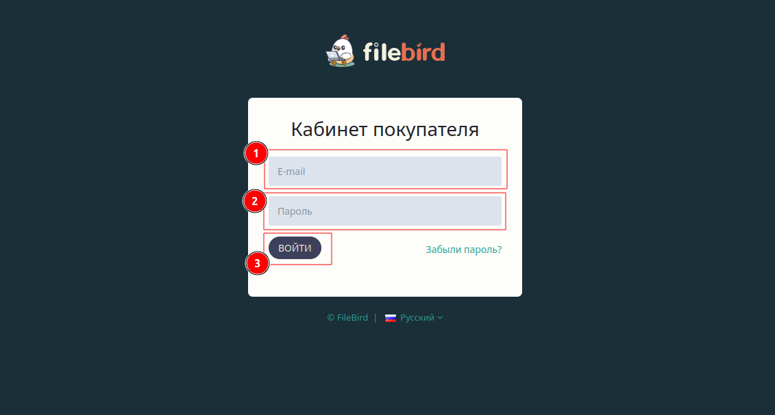 - Войдите в Личный кабинет Filebird по адресу filebird.ru/my