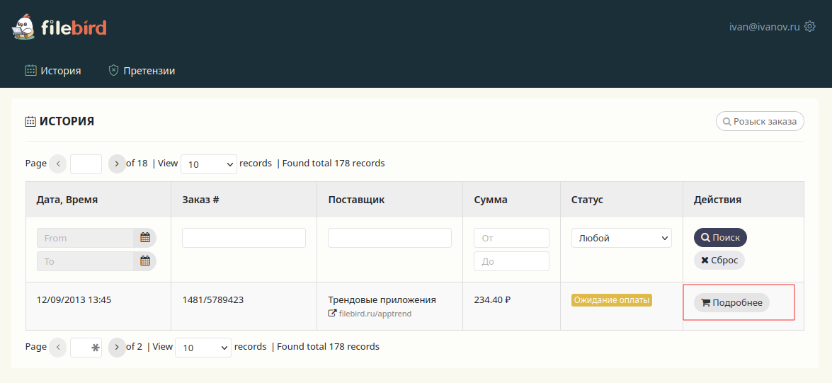заказ. Кликните на ссылку «Подробнее».
