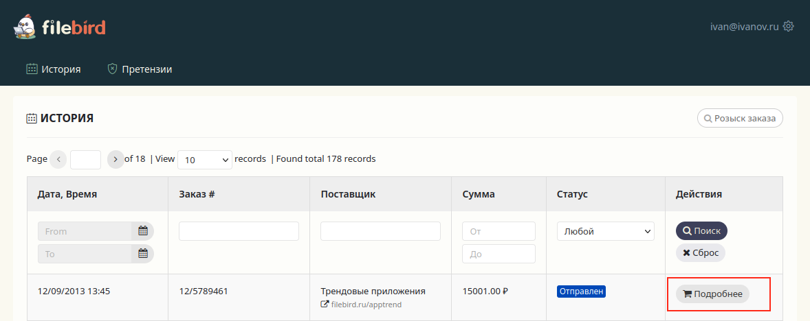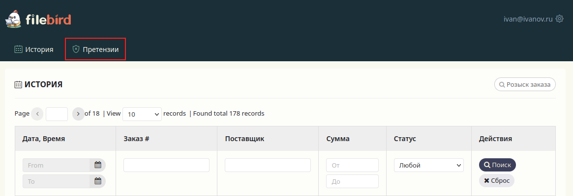 - Подтвердите действие, если общение с поставщиком не дало результатов или поставщик не отвечает на ваши запросы. Обратите внимание на регламент обработки претензий в FileBird