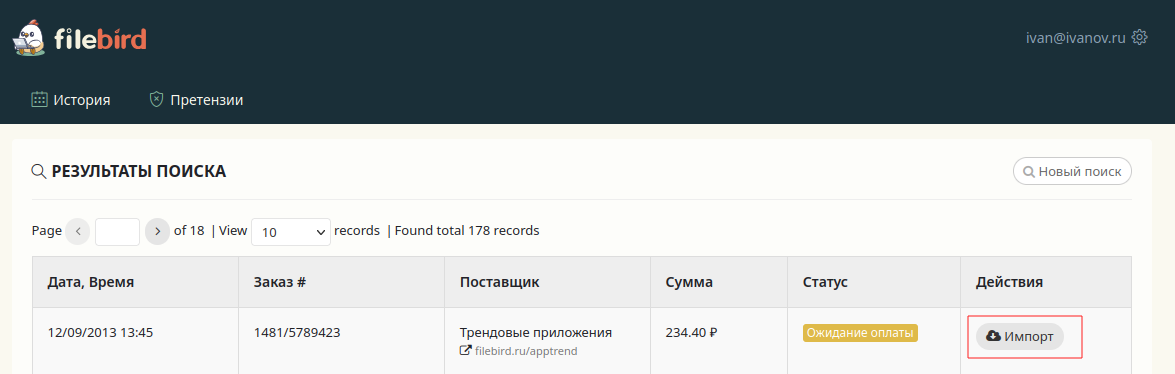 Перейдите на портал для покупателей Filebird — filebird.ru/my;