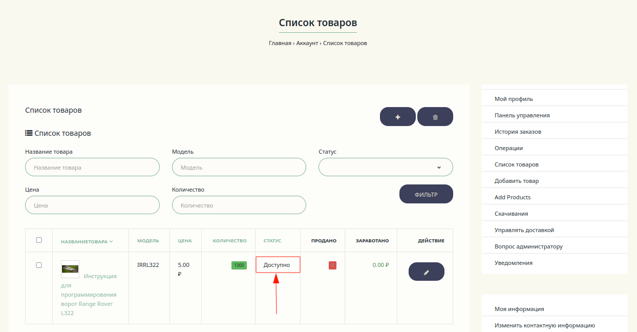 Редактирование: Пока ждёшь одобрения, можешь посмотреть, как выглядит страница товара, и при необходимости внести правки. Для этого используй соответствующие кнопки прямо в строке товара.