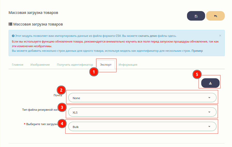 - Тип загрузки: ставь Bulk.