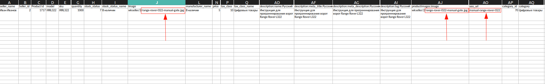 Теперь у тебя есть файл-шаблон, по которому ты сможешь добавлять остальные товары. Не пугайся, что там много столбцов — мы будем заполнять только самые важные ?.
