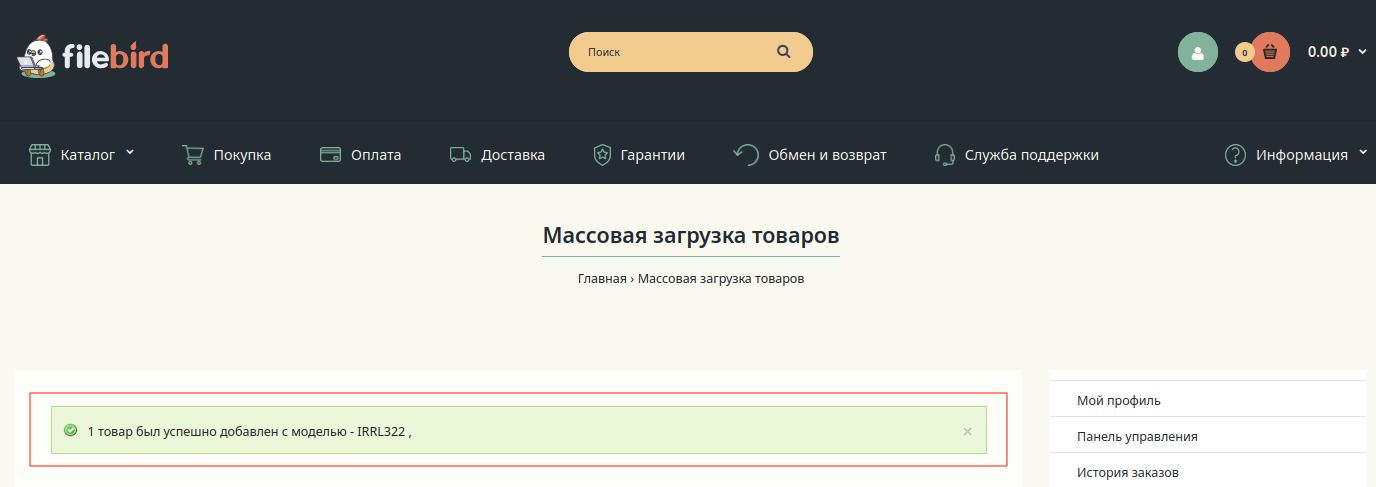 Зайди в свой аккаунт и найди там раздел «Массовая загрузка товаров». Там есть классная фишка — модуль загрузки, который помогает быстро закинуть кучу товаров через специальные файлы формата XLS (для Excel).
